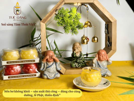 Từng ly nến bơ Tuệ Đăng là kết tinh của lòng thành, sự tỉ mỉ và tình yêu với Phật pháp. Không chỉ là sản phẩm, đó là ánh sáng trí tuệ được châm lên giữa đời sống bận rộn, giúp người con Phật an trú trong chánh niệm, tỉnh thức và tình thương.